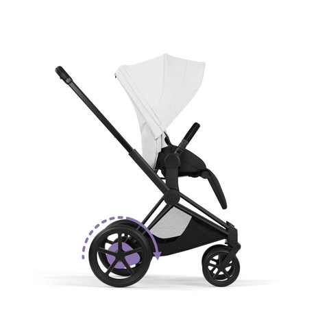 Med en design som är anpassad för det moderna livet kan barnvagnen fällas ihop till halva storleken och omdefinierar enkel förvaring samt transportvänlighet på resor. Den eleganta designen gör det enkelt att byta sittriktning i takt med att ditt barn utvecklas. Oavsett om barnet vill ha ögonkontakt med dig eller uppleva den spännande världen omkring sig, går det snabbt och enkelt att vända sittdelen. Ge ditt barn den perfekta positionen för att uppleva världen medan det växer. En helt plan liggposition i sittdelen säkerställer ergonomisk och stödjande komfort. Den extra stora och extra utdragbara suffletten med UPF50+ ger optimalt skydd mot sol, vind och regn. Genomtänkt funktionalitet gör att du kan spänna fast ditt barn på några sekunder – med bara en hand. Cybex unika en-drag-selen garanterar maximal trygghet och gör det enkelt för alla att sätta i och ta ut barnet ur barnvagnssätet. Förbättra ditt barns komfort med ett förlängt, helt integrerat benstöd. Det kan enkelt justeras för att säkerställa en bekväm och ergonomisk sittställning. Den kompakta designen gör den idealisk för bagageutrymmet eller för förvaring hemma mellan äventyren. Justera enkelt handtaget till perfekt höjd med en glidande rörelse med en hand, så att du kan anpassa din körställning och optimera din promenad. Den extra stora varukorgen, färgkoordinerad med sittdelen, kan fällas ut när du behöver extra utrymme på utflykter eller shoppingrundor. Barnvagnen kan enkelt omvandlas så att de två större hjulen klarar mer utmanande hinder på era dagliga äventyr, och den specialdesignade fjädringen absorberar stötar och ojämnheter och säkerställer en extra smidig körupplevelse.