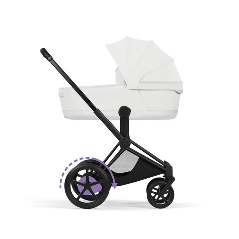 Cybex e-Priam Style kombinerar toppmodern teknik med en ikonisk design och förvandlar lyxig komfort och elegant stil för att leva upp till föräldrarnas högsta förväntningar. Cybex e-Priam – en kombivagn som ger föräldrar eldriven frihet redan från början. Den gör varje tur jämn på ojämnt underlag och gör kullersten, parkstigar och sandiga promenader till en lek. En innovativ vaggfunktion, styrd via e-Priams app, rör automatiskt barnvagnen mjukt fram och tillbaka för att lugna barnet och hjälpa det att natta. Det är vid bakaxeln som magin sker. De två elmotorerna är diskret placerade bakom hjulen och är så tysta att ditt barn kan sova ostört. Batteri, laddningsindikator och på/av-knapp är harmoniskt integrerade i e-Priams tidlösa design. Cybex Priams hopfällbara liggdel förenar rymlig komfort, lyxig sömn och resevänlig funktionalitet från allra första dagen. En andningsbar madrass i mjukt skum omsluter ditt barn med varsamt stöd, medan panorama- och takfönster släpper in ljus och frisk luft – och ger små nyfikna ögon möjlighet att utforska världen. Varje detalj är genomtänkt: lyxig sömnkomfort, banbrytande design och resfrihet utan kompromisser.