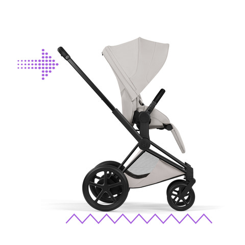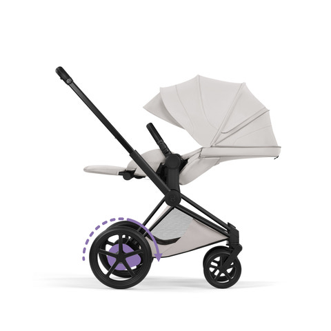 Med en design som är anpassad för det moderna livet kan den fällas ihop till halva storleken och omdefinierar enkel förvaring samt transportvänlighet på resor. Den eleganta designen gör det enkelt att byta sittriktning i takt med att ditt barn utvecklas. Oavsett om barnet vill ha ögonkontakt med dig eller uppleva den spännande världen omkring sig, går det snabbt och enkelt att vända sätet. Ge ditt barn den perfekta positionen för att uppleva världen medan det växer. En helt plan liggposition i sittdelen säkerställer ergonomisk och stödjande komfort. Den extra stora och extra utdragbara UPF50+-suffletten ger optimalt skydd mot sol, vind och regn. Genomtänkt funktionalitet innebär att du kan spänna fast ditt barn på några sekunder – med bara en hand. Cybex unika en-drag-selen garanterar maximal trygghet och gör det enkelt för alla att sätta i och ta ut barnet ur barnvagnssätet. Förbättra ditt barns komfort med ett förlängt, helt integrerat benstöd. Det kan enkelt justeras för att säkerställa en bekväm och ergonomisk sittställning. Den kompakta designen gör den idealisk för bagageutrymmet eller för förvaring hemma mellan äventyren. Justera enkelt handtaget till perfekt höjd med en glidande rörelse med en hand, så att du kan anpassa din körställning och optimera din promenad. Den extra stora varukorgen, färgkoordinerad med sittdelen, kan fällas ut när du behöver extra utrymme på utflykter eller shoppingrundor. Barnvagnen kan enkelt omvandlas så att de två större hjulen klarar mer utmanande hinder på era dagliga äventyr, och den specialdesignade fjädringen absorberar stötar och ojämnheter och säkerställer en extra smidig körupplevelse.