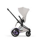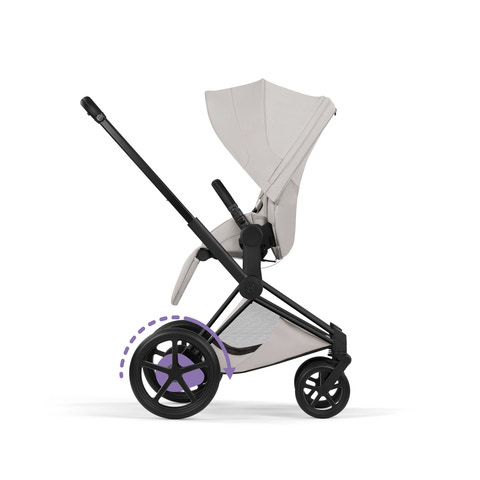 Cybex e-Priam Style – toppmodern teknik förenas med en verklig designikon och revolutionerar lyxig komfort och elegant design för att uppfylla föräldrarnas högsta förväntninga. Cybex e-Priam – en barnvagn som ger föräldrar eldriven frihet redan från början. Den gör varje tur jämn på ojämnt underlag och gör kullersten, parkstigar och sandiga promenader till en lek. En innovativ vaggfunktion, som styrs via e-Priams dedikerade app, rör automatiskt barnvagnen mjukt fram och tillbaka för att lugna barnet och hjälpa det att natta. Det är vid bakaxeln som magin sker. De två elmotorerna är diskret placerade bakom hjulen och är så tysta att ditt barn kan sova ostört. Batteri, laddningsindikator och på/av-knapp är harmoniskt integrerade i e-Priams tidlösa design.