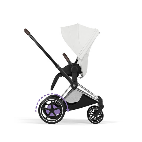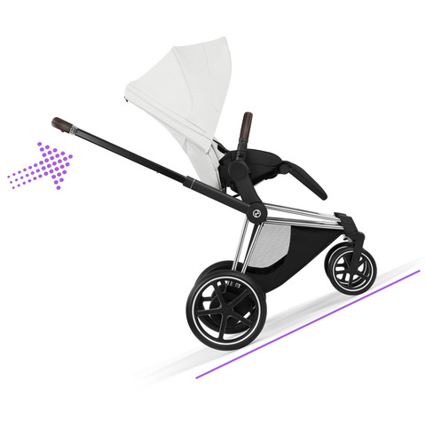 Cybex e-Priam Style – toppmodern teknik förenas med en verklig designikon och revolutionerar lyxig komfort och elegant design för att uppfylla föräldrarnas högsta förväntninga. Cybex e-Priam – en barnvagn som ger föräldrar eldriven frihet redan från början. Den gör varje tur jämn på ojämnt underlag och gör kullersten, parkstigar och sandiga promenader till en lek. En innovativ vaggfunktion, som styrs via e-Priams dedikerade app, rör automatiskt barnvagnen mjukt fram och tillbaka för att lugna barnet och hjälpa det att natta. Det är vid bakaxeln som magin sker. De två elmotorerna är diskret placerade bakom hjulen och är så tysta att ditt barn kan sova ostört. Batteri, laddningsindikator och på/av-knapp är harmoniskt integrerade i e-Priams tidlösa design.