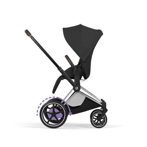 Cybex e-Priam Style – toppmodern teknik förenas med en verklig designikon och revolutionerar lyxig komfort och elegant design för att uppfylla föräldrarnas högsta förväntninga. Cybex e-Priam – en barnvagn som ger föräldrar eldriven frihet redan från början. Den gör varje tur jämn på ojämnt underlag och gör kullersten, parkstigar och sandiga promenader till en lek. En innovativ vaggfunktion, som styrs via e-Priams dedikerade app, rör automatiskt barnvagnen mjukt fram och tillbaka för att lugna barnet och hjälpa det att natta. Det är vid bakaxeln som magin sker. De två elmotorerna är diskret placerade bakom hjulen och är så tysta att ditt barn kan sova ostört. Batteri, laddningsindikator och på/av-knapp är harmoniskt integrerade i e-Priams tidlösa design.