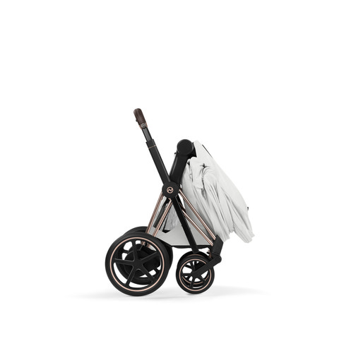 När det är dags för förvaring gör den innovativa designen det möjligt att fälla ihop vagnen med både liggdelen och sittdelen till halva storleken, även medan de fortfarande är fästa vid Priam-ramen – snabbt, smidigt och kompakt. Den kompakta designen gör den idealisk för bagageutrymmet eller för förvaring hemma mellan äventyren. Upplev genial funktionalitet och lyxig komfort i en unik och originell produkt – Cybex Priam Style är en verklig designikon på hjul.