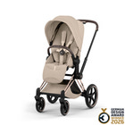 Cybex Priam Style revolutionerar lyxig komfort och exklusiv design för att uppfylla föräldrarnas högsta förväntningar. Den kombinerar utsökta detaljer, tidlös elegans och ultimat komfort. Med en genomtänkt design för det moderna livet kan den fällas ihop till halva storleken och omdefinierar enkel förvaring samt transportvänlighet på resor. Den eleganta designen gör det enkelt att byta sittriktning i takt med att ditt barn utvecklas. Oavsett om barnet vill ha ögonkontakt med dig eller uppleva den spännande världen omkring sig, går det snabbt och enkelt att vända sätet. Ge ditt barn den perfekta positionen för att uppleva världen medan det växer. En helt plan liggposition i sittdelen garanterar ergonomisk och stödjande komfort. Den extra stora och extra utdragbara UPF50+-suffletten ger optimalt skydd mot sol, vind och regn. Genomtänkt funktionalitet innebär att du kan spänna fast ditt barn på några sekunder – med bara en hand. Cybex unika en-drag-sele garanterar maximal trygghet och gör det enkelt för alla att sätta i och ta ut barnet ur barnvagnssätet. Förbättra ditt barns komfort med ett förlängt, helt integrerat benstöd. Det kan enkelt justeras för att säkerställa en bekväm och ergonomisk sittställning. Den kompakta designen gör den idealisk för bagageutrymmet eller för förvaring hemma mellan äventyren. Justera enkelt handtaget till perfekt höjd med en glidande rörelse med en hand, så att du kan anpassa din körställning och optimera din promenad. Den extra stora varukorgen, färgkoordinerad med sätesenheten, kan fällas ut när du behöver extra utrymme på utflykter eller shoppingrundor. Barnvagnen kan enkelt omvandlas så att de två större hjulen klarar mer utmanande hinder på era dagliga äventyr, och den specialdesignade fjädringen absorberar stötar och ojämnheter och säkerställer en extra smidig körupplevelse.