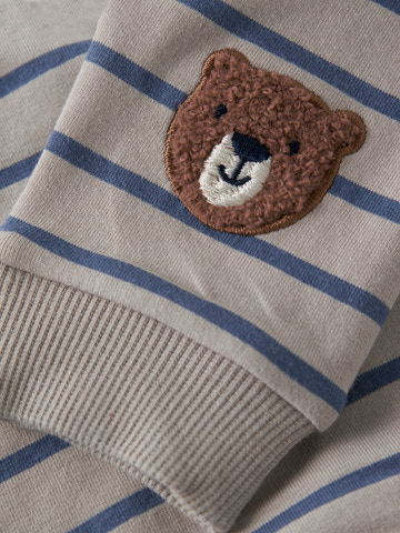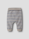 Daddel Sweatpants från NAME IT är ett par charmiga och bekväma byxor för de minsta. Med sin mjuka bomullsblandning och inslag av elastan får barnet full rörelsefrihet och en skön känsla mot huden. Byxorna har ett klassiskt randigt mönster i grått och blått samt söta björnapplikationer vid bensluten, vilket ger en lekfull touch. Den breda, ribbade midjan och muddar vid bensluten gör att byxorna sitter på plats utan att strama. Perfekta för både lek och vila – ett måste i barnets basgarderob!