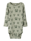 Den långärmade bodyn från NAME IT är ett mångsidigt och bekvämt plagg för dam, tillverkad av ekologisk bomull, lyocell och elastan. Materialblandningen ger en mjuk och följsam känsla mot huden samtidigt som den är skonsam mot miljön. Den stilrena färgen "Shadow" gör bodyn lätt att kombinera med både vardags- och festkläder. Stretchigt tyg och praktiska tryckknappar i grenen gör plagget enkelt att ta av och på, och den långärmade designen passar lika bra under kyliga dagar som ensam under varmare perioder.