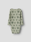 Den långärmade bodyn från NAME IT är ett mångsidigt och bekvämt plagg för dam, tillverkad av ekologisk bomull, lyocell och elastan. Materialblandningen ger en mjuk och följsam känsla mot huden samtidigt som den är skonsam mot miljön. Den stilrena färgen "Shadow" gör bodyn lätt att kombinera med både vardags- och festkläder. Stretchigt tyg och praktiska tryckknappar i grenen gör plagget enkelt att ta av och på, och den långärmade designen passar lika bra under kyliga dagar som ensam under varmare perioder. Ett perfekt val för dig som söker komfort, stil och hållbarhet i ett och samma plagg.