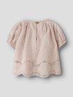 Dayna Tröja från Lil' Atelier är en charmig och bekväm topp för små äventyrare. Den är tillverkad i ekologisk bomull som känns mjuk mot huden och är snäll mot miljön. Tröjan har en vacker broderad design med spetsdetaljer längs nederkanten, vilket ger ett romantiskt och lekfullt uttryck. Puffärmar och smockad halsringning gör plagget extra bekvämt och lätt att ta på och av. Den luftiga passformen gör tröjan idealisk för varma sommardagar, samtidigt som den stilrena färgen Peach Whip passar till både vardag och fest. Ett perfekt val för dig som vill kombinera stil, komfort och hållbarhet!