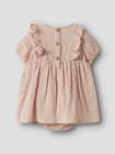 Dembe Bodyklänning från Lil' Atelier är en charmig och bekväm klänning för de minsta, tillverkad i mjuk ekologisk bomull som är snäll mot barnets hud. Den har en vacker smock upptill, volangärmar och en luftig kjol som ger en lekfull känsla. Klänningen är lätt att ta av och på tack vare praktiska tryckknappar i grenen, vilket underlättar vid blöjbyten. Den ljusa Peach Whip-färgen och de diskreta prickarna gör plagget extra fint för både vardag och fest. Ett hållbart val som kombinerar stil, komfort och funktion för ditt barn.