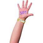 SOS-armband från MARKY för barn. Du kan skriva ditt namn och telefonnummer på armbandet med den medföljande vattenfasta pennan. Ge ditt barn detta snygga armband.