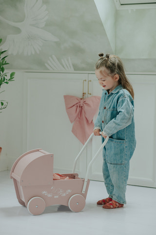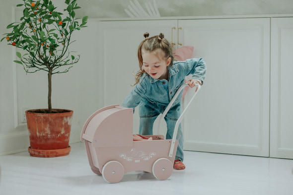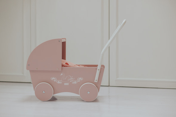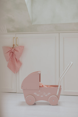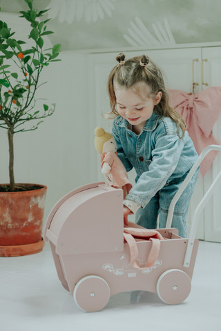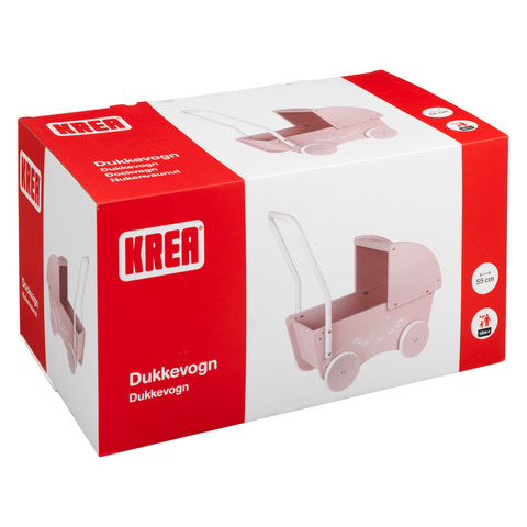 Låt dockorna sova gott i den klassiska dockvagnen i trä från KREA®, som nu även finns i en söt rosa färg. Dockvagnen har en tidlös design med små gummibelagda hjul som garanterar en stabil och tystare åktur. Dockvagnen mäter: H: 42 x B: 22 x L: 44 cm med inre liggmått: L: 32 x B: 17 cm. Levereras omonterad, men är enkel att montera. Max. vikt: 25 kg.