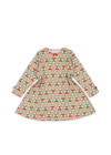 Mjuk bomullsjerseyklänning med rosett. Tillverkad av 100 % ekologisk bomull. GOTS, ekologisk, certifierad av CU1094701