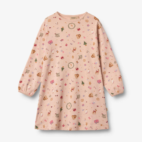 Vacker långärmad nattklänning med julmotiv i ekologisk bomull för barn. Wheat's charmiga nattklänning med julmotiv är designad för att sprida magisk julstämning. Den mjuka passformen gör den både lätt och bekväm för ditt barn att ha på sig hela dagen. Denna vackra nattklänning är också perfekt för kalla höst- och vinterdagar hemma om ditt barn behöver mysiga kläder för att titta på film i soffan.