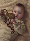 • Mjuk stickad tröja med mysig brodyr med texten ”Santa baby”
