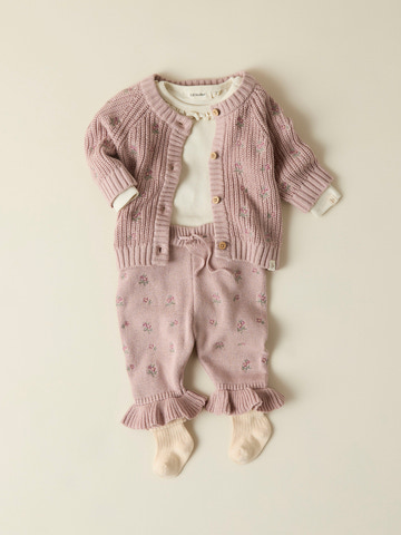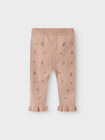 Emlen stickade byxor från Lil' Atelier är det perfekta valet för små barn som förtjänar både komfort och stil. Byxorna är tillverkade av mjuk ekologisk bomull som känns skön mot huden och garanterar god andningsförmåga hela dagen. Det subtila, diskreta mönstret och de söta volangdetaljerna vid anklarna ger dem ett charmigt utseende, medan den justerbara midjan med knytband garanterar en perfekt passform. Ribbade kanter håller byxorna på plats, och den klassiska designen gör dem lätta att matcha med både bodys och blusar. Perfekt för både vardagsbruk och festliga tillfällen där komfort och utseende går hand i hand.