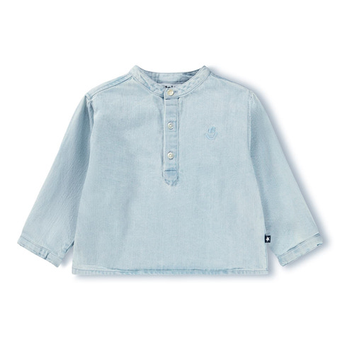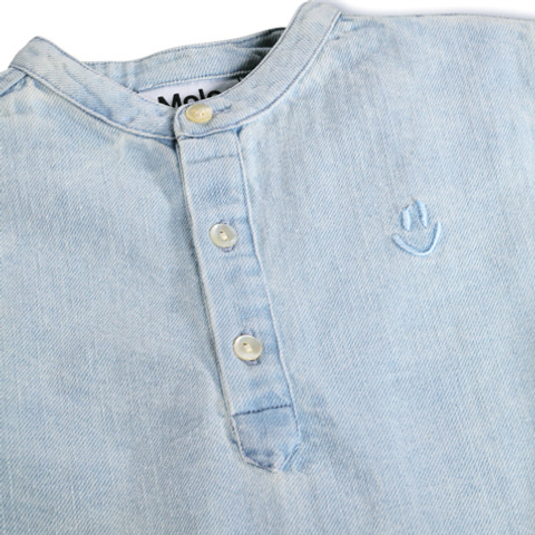 Enoz Skjorta från Molo är en stilren och bekväm skjorta i färgen Misty Denim, tillverkad av ekologisk bomull som är snäll mot både barnets hud och miljön. Den har en klassisk, ljus denimlook och är utrustad med en praktisk knappslå framtill för enkel av- och påklädning. Skjortan har lång ärm och en avslappnad passform som gör den perfekt för både vardag och festliga tillfällen. Den diskreta broderade Molo-loggan på bröstet ger en fin detalj och förstärker den tidlösa designen. Ett hållbart och mångsidigt plagg som passar lika bra till jeans som till mjuka byxor.
