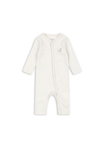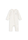 Mjuk jumpsuit i ekologisk bomull för nyfödda. Med tryckknappar längs hela framsidan och benen, vilket gör det enkelt och bekvämt att byta på ditt barn.