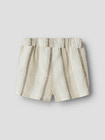 Fibert Shorts från Lil' Atelier är perfekta för sommarens alla äventyr. De är tillverkade av 100% ekologisk bomull, vilket gör dem extra mjuka och skonsamma mot barnets hud. Den luftiga och lätta designen håller barnet svalt även under de varmaste dagarna. Shortsen har en bekväm, justerbar midja med dragsko och praktiska fickor framtill. Det stilrena randiga mönstret i naturliga toner gör dem enkla att matcha med andra plagg. Ett hållbart och bekvämt val för både lek och vila!
