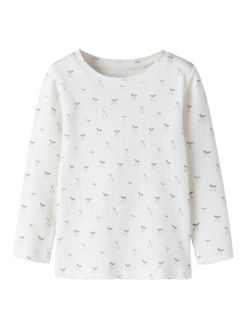 Ficherry Slim Tröja från NAME IT är en mjuk och bekväm tröja i färgen Cloud Dancer, dekorerad med ett charmigt småblommigt mönster. Tröjan är tillverkad i en stretchig bomullsblandning som ger både rörelsefrihet och en skön känsla mot huden. Den smala passformen gör att tröjan sitter snyggt och passar lika bra till jeans som till kjol. Med sin klassiska runda hals och långa ärmar är den ett mångsidigt plagg för alla tillfällen. Perfekt för lek, skola eller när det är dags att klä upp sig lite extra!