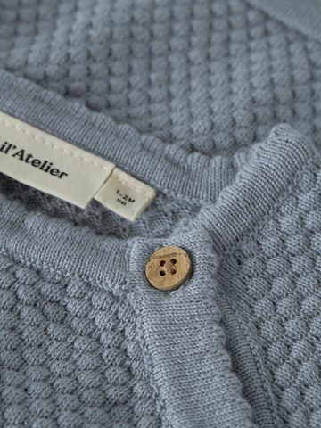 Fico Wrap Tröja från Lil' Atelier är en underbart mjuk och stickad tröja i 100% bomull, designad för att ge ditt barn maximal komfort och rörelsefrihet. Den vackra Tradewinds-färgen och den fina strukturen gör tröjan både stilren och tidlös. Omlottknäppningen med träknappar längs sidan gör det enkelt att ta av och på tröjan, vilket är särskilt praktiskt för de allra minsta. Tröjan passar lika bra till vardags som till fest och är perfekt att kombinera med andra plagg för ett varmt och ombonat lager-på-lager. Ett hållbart och charmigt tillskott i barnens garderob!