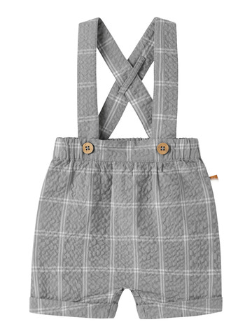 Filipe Shorts från Lil' Atelier är ett par charmiga och bekväma shorts för de minsta, tillverkade i 100% ekologisk bomull som känns mjuk mot huden. Den klassiska rutmönstrade designen i Ultimate Grey ger ett stilrent intryck, medan de justerbara hängslena med fina träknappar ger både funktion och en söt detalj. Shortsen har resår i midjan för bästa passform och komfort, och de är lika fina till vardags som till festligare tillfällen.