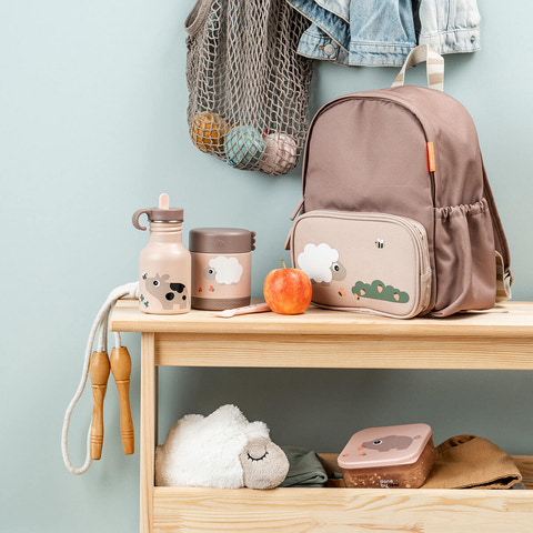 Done By Deer Celebration 350 ml rostfritt stålflaska är den perfekta drickflaskan för barn som vill ha både funktionalitet och söt design. Flaskan är tillverkad av robust rostfritt stål, vilket gör den extra hållbar och säkerställer att den inte absorberar smaken av innehållet. Det festliga motivet och de mjuka färgerna gör flaskan till en favorit bland de små, och den passar perfekt i en väska till dagis, skolan eller utflykter. Locket är utrustat med en smart drickmunstycke med ett dolt sugrör, vilket gör det enkelt för barnet att dricka själv, och det praktiska handtaget gör flaskan lätt att bära eller hänga på en väska. Flaskan är designad med säkerhet och användarvänlighet i åtanke och är fri från skadliga ämnen som BPA och ftalater. Den rymmer 350 ml vätska, vilket är en lämplig mängd för vatten, juice eller mjölk. Ø7 x H 15 cm. Flaska: 18/8 rostfritt stål. Lock: PP. Sugrör: PP. Ring: Silikon.Rekommenderas inte för användning i diskmaskin.