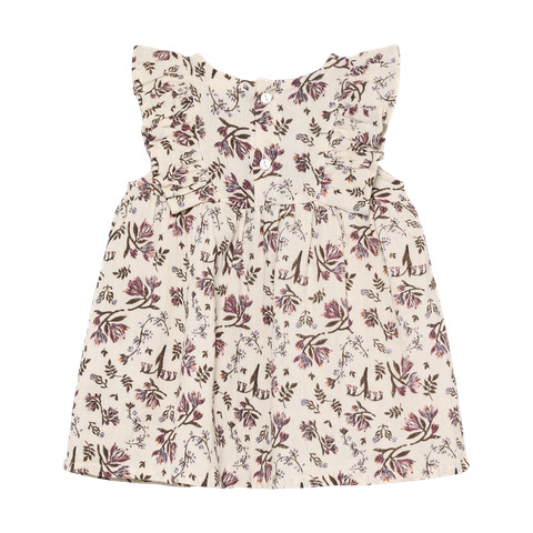 Floral Dress från En Fant är en bedårande klänning som kombinerar ett elegant blommönster med fina volanger på axlarna, vilket skapar en feminin och charmig look. Klänningen är designad i ett mjukt och bekvämt tyg som garanterar komfort hela dagen, oavsett om den bärs till vardags eller vid festliga tillfällen. Den ljusa äggnogsfärgen utgör en vacker bakgrund för de delikata blommorna som pryder hela klänningen och skapar en lätt och somrig look. Klänningen har en klassisk passform med gott om utrymme för ditt barn att röra sig fritt och bekvämt. De fina volangerna på axlarna ger en extra touch av elegans, och klänningen är lätt att ta på och av, vilket gör den praktisk för vardagsbruk. Klänningen kan stylas med strumpbyxor eller leggings på kyligare dagar och är ett självklart val för sommarens många evenemang.
