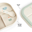 Den delade tallriken Celebration Sand från Done By Deer förvandlar måltiderna till en fest för de små. Tallriken har tre separata fack så att maten kan delas upp och serveras på ett överskådligt sätt – perfekt för barn som älskar att utforska olika smaker. Den söta illustrationen med en elefant och en fågel i festliga färger gör måltiderna roligare och mer inbjudande. Tallriken är tillverkad av robust material som tål diskmaskin och mikrovågsugn, och den halkfria undersidan gör att tallriken ligger kvar på bordet. Perfekt för både vardagsbruk och festliga tillfällen.
