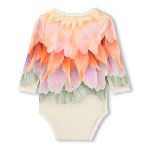 Foss Långärmad Body - Bright Petals från Molo är en underbar body med ett fantasifullt blommönster i mjuka, färgglada nyanser. Den är tillverkad av 95% bomull och 5% elastan, vilket ger en skön och stretchig passform som följer barnets rörelser. Bodyn har praktiska tryckknappar vid axeln och i grenen, vilket gör den enkel att ta av och på – perfekt för snabba byten. Den långärmade modellen är idealisk för både svalare och varmare dagar, och det mjuka materialet är skonsamt mot barnets hud. Foss Body kombinerar lekfull design med funktionalitet och komfort, och blir snabbt en favorit i garderoben.