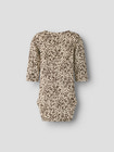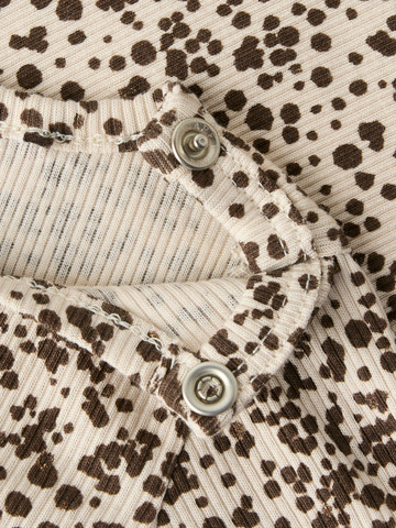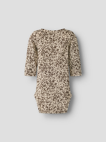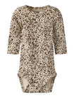 Frainy Långärmad Body från NAME IT är ett härligt basplagg för de minsta, tillverkat i en mjuk och stretchig blandning av ekologisk bomull, modal och elastan. Den ribbade strukturen ger extra komfort och rörelsefrihet, samtidigt som den långärmade designen håller barnet varmt året om. Med tryckknappar i grenen blir blöjbyten enkla och smidiga. Den fina sandfärgade botten med prickigt mönster ger ett lekfullt och modernt uttryck som passar till alla tillfällen. Perfekt för både vardag och fest!