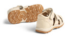 Frei-sandalen för småbarn har två justerbara kardborreband över foten, vilket gör skon lättare för ditt barn att ta på sig och ger god stabilitet. Den har en sluten tå för extra skydd och en sluten häl för extra stabilitet. Wheat's prewalkers är lätta, flexibla och bekväma för ditt barn att ha på sig, och de är utformade för att skydda små fötter när de ger sig ut på sina första äventyr. Sandalen är tillverkad av naturläder med detaljer i mocka från LWG-garverier. För att säkerställa att inga giftiga metaller kommer i kontakt med huden har vi fodrat våra sandaler med krom- och metallfritt läder. Lädret är garvat utan användning av krom och metaller och kommer därför att utveckla en vacker patina med tiden. Innersulan är tillverkad av latex och täckt med krom- och metallfritt garvat läder. Latex är ett naturligt material som andas och är flexibelt med en trampolineffekt för bekväma steg. Yttersulan är tillverkad av gummi, som är mycket lätt och ger fantastisk flexibilitet. Sandalerna har normal storlek. Rekommenderad tillväxtmarginal: 1–1,5 cm.