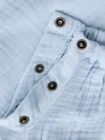 Fulina Hängselbyxor från Lil' Atelier är ett perfekt val för små äventyrare. De är tillverkade i 100% ekologisk bomull, vilket gör dem både mjuka och skonsamma mot barnets hud. Den ljusblå färgen Zen Blue ger ett lugnt och stilrent intryck, medan de dekorativa träknapparna och de små fickorna framtill ger en charmig touch. Axelbanden är justerbara för att passa ditt barn när det växer, och resåren vid bensluten ser till att byxorna sitter bekvämt hela dagen.