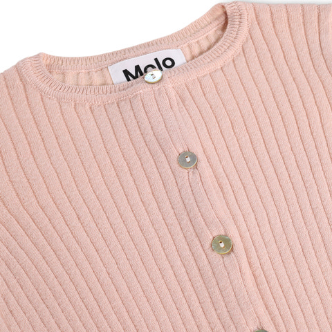 Gabby Cardigan från Molo är en söt och mångsidig kofta som passar perfekt både till vardags och till fest. Den är tillverkad i 100 % bomull, vilket gör den extra mjuk och skön mot huden. Den ribbade stickningen ger den en modern och tidlös look, medan den klassiska rundhalsen och knäppningen gör den lätt att ta på och av. Koftan har en vacker dammrosa färg som passar till det mesta i din garderob, och den kan bäras som ett lätt lager på kyliga dagar eller som en del av en elegant outfit. Perfekt för barn som älskar komfort och stil i ett.