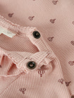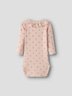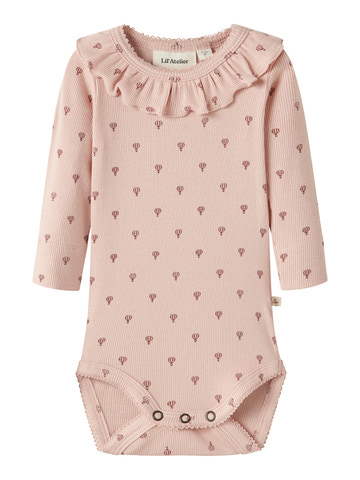 Sätt ihop den perfekta outfiten för ditt barn med kvalitativa vardagskläder och skapa en bekväm och trendig look. Jersey är ett lätt och stretchigt tyg med en mjuk yta och insida som ger en bekväm känsla och rörelsefrihet. - Produkttyp: Bodysuit - Halsringning: Rund halsringning - Ärmar: Långa ärmar (L/S) - Stängning: Tryckknappar - Ytterligare detaljer: Etikett, volanger, babylock-detaljer - Tryck: Tryck som upprepas över hela produktens yta - Varning: VARNING! Håll borta från eld