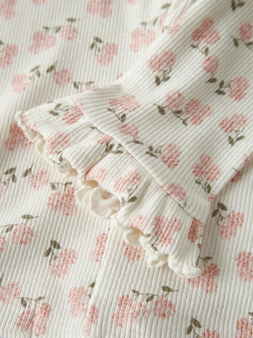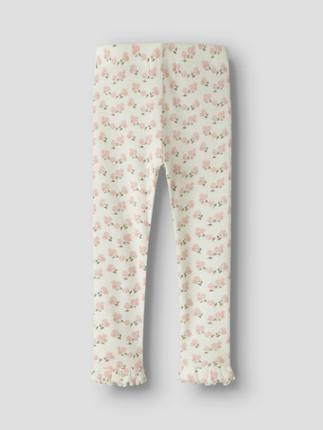 Gago Kna Slim Leggings från Lil' Atelier är ett par mjuka och bekväma leggings i färgen Coconut Milk, dekorerade med ett charmigt blommönster. Leggingsen är tillverkade av en blandning av ekologisk bomull, lyocell och elastan, vilket ger en skön stretch och god andningsförmåga. Den smala passformen och den mjuka resåren i midjan gör dem perfekta för lek och rörelse, medan volangdetaljerna vid bensluten ger en extra söt touch.