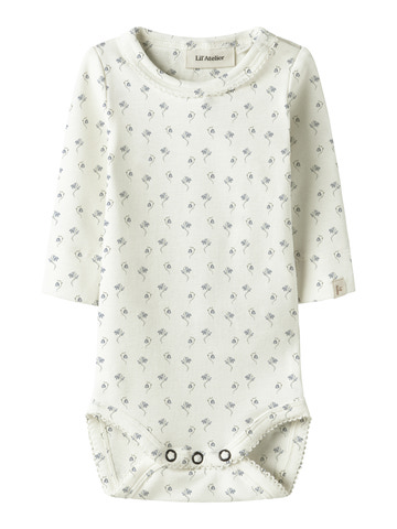 Gayo Sag långärmad bodysuit från Lil' Atelier i Coconut är ett utmärkt val för de små. Bodysuiten är tillverkad i ett mjukt och stretchigt tyg som garanterar komfort hela dagen lång. Det fina blommönstret ger den en söt och klassisk look, medan de långa ärmarna skyddar mot kylan och gör bodysuiten perfekt för både vardagsbruk och fest. Tryckknappar i nederkanten gör blöjbyten snabba och enkla, och den praktiska passformen gör att bodyn sitter bra utan att vara för tight. Lil' Atelier är känt för sitt fokus på kvalitet och tidlös design, vilket gör denna bodyn till ett säkert val för din garderob.