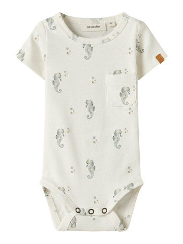 Gayo Sev Kortärmad Slim Body från Lil' Atelier är ett underbart plagg för de minsta. Den är tillverkad i en mjuk och stretchig blandning av bomull, lyocell och elastan, vilket ger en behaglig känsla mot huden och följer barnets rörelser. Den söta sjöhästprinten och den lilla bröstfickan ger en lekfull touch, medan tryckknapparna i grenen gör blöjbyten smidiga. Perfekt för både vardag och fest, och det andningsbara materialet håller ditt barn svalt även under varma dagar. En body som kombinerar stil, funktion och komfort på bästa sätt!