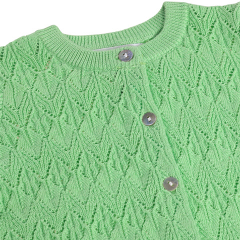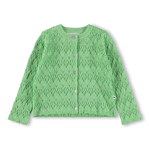Gio Cardigan från Molo är en underbar kofta i färgen Green Garden, tillverkad av 100% ekologisk bomull som är snäll mot både huden och miljön. Den har ett vackert stickat mönster som ger plagget en exklusiv känsla och passar lika bra till vardags som till fest. Koftan är försedd med knappar framtill, vilket gör den enkel att ta på och av. Den mjuka bomullen gör att koftan känns behaglig mot kroppen och är perfekt för lager-på-lager under kyliga dagar.