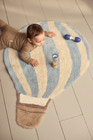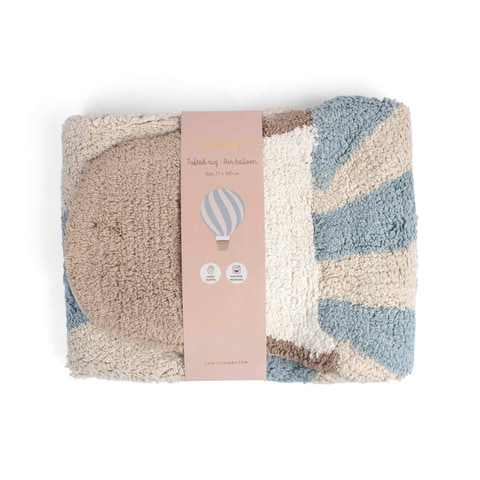 Varje matta är handgjord i Indien av 100 % bomull och är därför unik med små variationer som speglar hantverkets kvalitet. Den halkfria beläggningen på baksidan säkerställer att mattan ligger kvar på plats medan ditt barn leker, och den tjocka, mjuka strukturen ger både värme och skydd mot kalla golv. Mattan är designad för familjelivet och kan tvättas i maskin på skonsamt program.