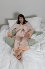 Najell Graviditetskudde har två tillhörande, integrerade amningskuddar. På så sätt går den att använda från graviditet, hela vägen fram tills det att barnet är fött och ammar. Kudden går enkelt att anpassa efter humör och behov. Det går att justera fastheten genom att knyta till kudden tightare. Tack vare den mjuka fyllningen och formen på kudden följer och anpassar den sig efter din kropp och dina former.