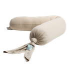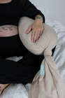 Najell Graviditetskudde har två tillhörande, integrerade amningskuddar. På så sätt går den att använda från graviditet, hela vägen fram tills det att barnet är fött och ammar. Kudden går enkelt att anpassa efter humör och behov. Det går att justera fastheten genom att knyta till kudden tightare. Tack vare den mjuka fyllningen och formen på kudden följer och anpassar den sig efter din kropp och dina former.