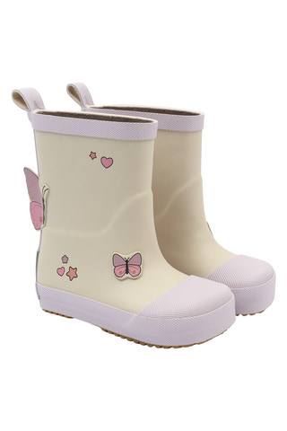 Gummistövlar Fjäril Barefoot från Mikk-Line är perfekta för små äventyrare som älskar att hoppa i vattenpölar! Den barfotainspirerade designen ger frihet för små fötter att röra sig naturligt, samtidigt som stövlarna är tillverkade av slitstarkt naturgummi som håller fötterna torra och bekväma. De söta fjärilsdetaljerna i 3D och de mjuka färgerna gör stövlarna extra roliga att använda. Halksäker sula och förstärkt tå ger extra skydd och stabilitet, och den praktiska öglan bak gör dem enkla att ta på och av. Perfekta för lek och utflykter i alla väder!