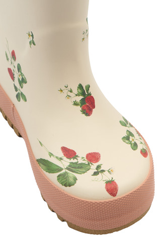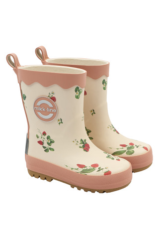 Gummistövlar med tryck från Mikk-Line är perfekta för lek och äventyr i regn och rusk. Den charmiga Strawberry AOP-designen gör stövlarna extra roliga att bära, samtidigt som de är tillverkade i slitstarkt naturgummi som håller fötterna torra. Den halksäkra sulan ger bra grepp på våta underlag och den praktiska dragfliken gör det enkelt för barnet att ta på och av stövlarna själv. Med ett mjukt foder får ditt barn en bekväm passform hela dagen. Stövlarna är både funktionella och snygga – ett måste för aktiva barn!