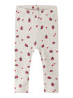 Haline Leggings från NAME IT är ett par charmiga leggings i färgen Peyote melange, dekorerade med söta nyckelpigor och små hjärtan. Materialblandningen av ekologisk bomull, modal och elastan gör dem extra mjuka och behagliga mot huden, samtidigt som de är flexibla och följer barnets rörelser. Den bekväma resåren i midjan ser till att leggingsen sitter på plats hela dagen, oavsett lek och bus. Perfekta att kombinera med både klänning och tröja för en lekfull och bekväm vardagslook.