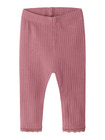 Hallie Leggings från NAME IT är ett perfekt basplagg för de minsta. De är tillverkade i en mjuk och stretchig blandning av ekologisk bomull och elastan, vilket ger både komfort och rörelsefrihet hela dagen. Den ribbade strukturen och den söta spetskanten nedtill ger leggingsen en extra fin detalj, samtidigt som den elastiska midjan ser till att de sitter bekvämt på plats. Färgen Mesa rose är lätt att matcha med andra plagg och passar lika bra till vardag som till fest. Ett slitstarkt och stilrent val för barnets garderob! Specifikationer: