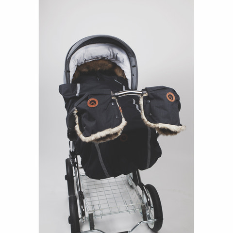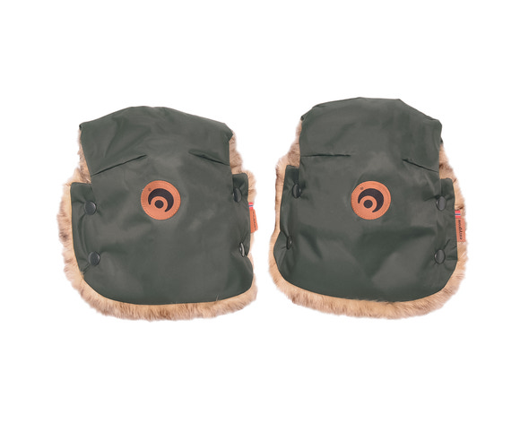 Härliga handmuffar i samma material som åkpåsarna – vatten- och vindtät polyester fodrad med mjuk fuskpäls. Fästs enkelt på barnvagnens handtag och håller dina händer varma under promenaden. Muffarna kan kopplas ihop och användas tillsammans eller var för sig som handskar.