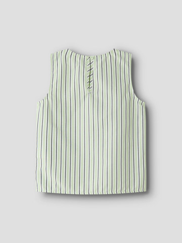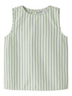Helene Topp från NAME IT är ett utmärkt val för varma dagar när du vill kombinera stil och komfort. Den är tillverkad i en skön blandning av polyester och bomull som känns mjuk mot huden och ger en lätt, luftig känsla. Det klassiska randiga mönstret i patina green ger toppen en modern och fräsch look, medan den ärmlösa designen gör den extra sval och bekväm. Passar lika bra till jeans som till kjol och är enkel att matcha för olika tillfällen. Ett mångsidigt plagg som snabbt blir en favorit i garderoben!