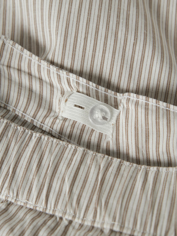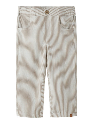Helo Byxor från Lil' Atelier i färgen Coconut Milk är ett perfekt val för varma dagar. Byxorna är tillverkade i en mjuk blandning av bomull, lyocell och elastan, vilket ger en skön känsla mot huden och bra rörelsefrihet. Det klassiska randiga mönstret i ljusa nyanser ger en tidlös och stilren look, medan de praktiska fickorna och knappstängningen framtill gör byxorna både funktionella och lätta att ta på. Passar lika bra till vardags som till festligare tillfällen och är enkla att matcha med andra plagg i garderoben.