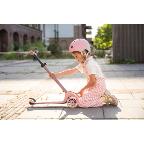 Highwaykick 3S-sparkcykeln från Scoot and Ride gör utomhusleken ännu roligare. Det som gör denna modell speciell är det dubbla styrsystemet: barnet kan antingen styra genom att vrida på styret på traditionellt sätt eller genom att luta sig åt sidorna, vilket ger en mer intuitiv och stabil körupplevelse. Det 3-stegs höjdjusterbara styret gör att sparkcykeln kan växa med barnet och därmed användas i många år. Dessutom gör den nya fällmekanismen det enkelt att fälla styret bakåt så att sparkcykeln snabbt kan packas ihop och transporteras eller förvaras på ett minimalt utrymme.
