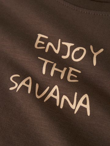 Holdu T-Shirt från NAME IT är ett perfekt tillskott i barnens garderob. Tillverkad i en mjuk och stretchig bomullsblandning ger den både komfort och rörelsefrihet hela dagen. Den bruna färgen "Chestnut" och det lekfulla trycket framtill gör t-shirten både trendig och lättmatchad till olika outfits. Med klassisk rund hals och korta ärmar passar den lika bra till skolan som till fritidsaktiviteter. Ett utmärkt val för dig som vill ha en slitstark och bekväm t-shirt med en rolig detalj! Specifikationer: